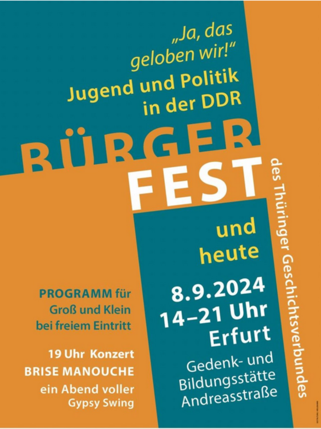 Die Veranstaltungen im Rahmen der "Tage der Begegnung 2024" werden gefördert von der Beauftragten der Bundesregierung für Kultur und Medien aufgrund eines Beschlusses des Deutschen Bundestages, von der Thüringer Staatskanzlei, sowie der Bundesstiftung zur Aufarbeitung der SED-Diktatur.